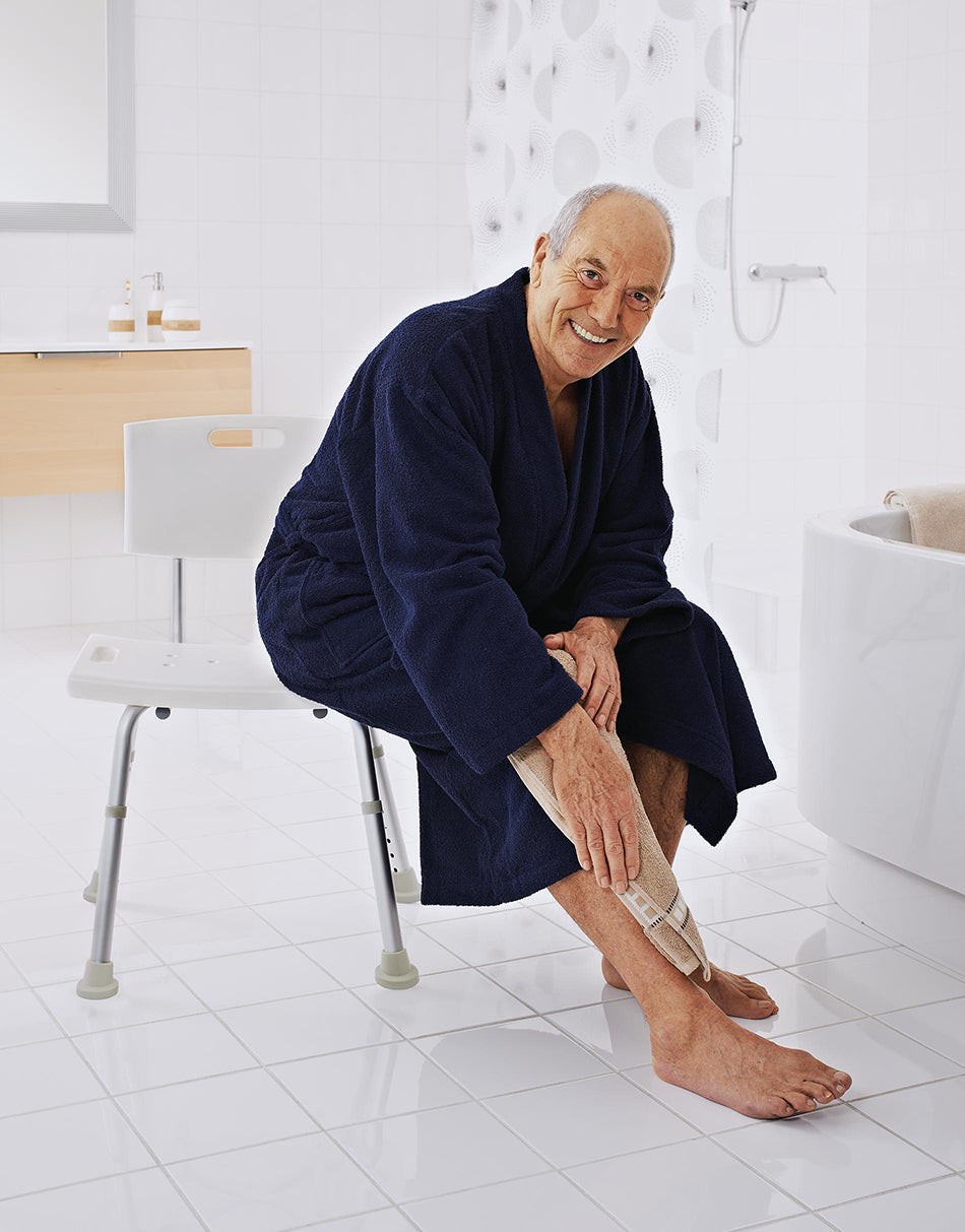 Met de badkamerstoel kan er veilig en ontspannen gebruik worden gemaakt van het bad of de douche. De badkamerstoel is voorzien van brede antislip pootjes die zorgen dat de badkamerstoel stevig blijft staan op vochtige en natte vloeren.