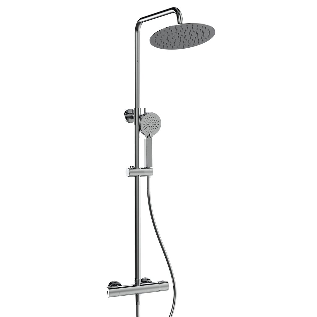 Upgrade je doucheruimte met de Rondo opbouwset by FuturBath, een perfecte combinatie van elegantie en functionaliteit. Deze thermostatische douchekolom met een rond ontwerp in glanzend chroom voegt een vleugje tijdloze luxe toe aan je badkamer.