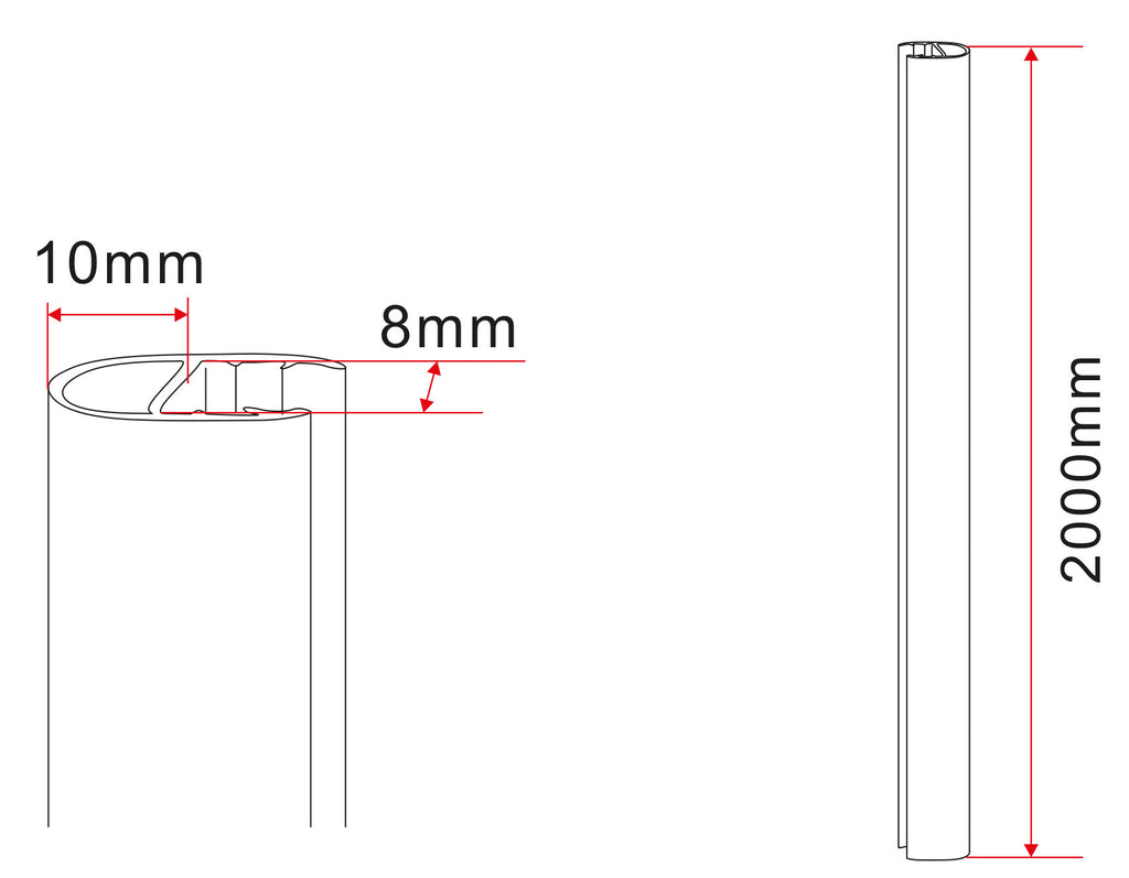 rubber deurstrip 8mm x 2000 tbv nisdeur