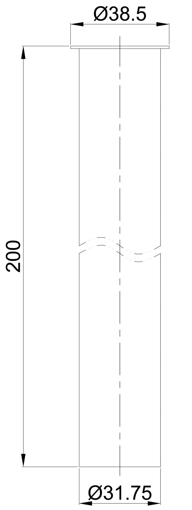 UniMatch sifon verlengbuis 20 cm met kraag geborsteld messing PVD