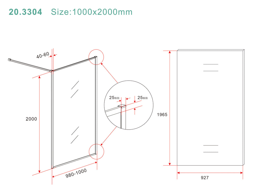 Square inloopdouche 1000 x 2000 x 8 mm nano helder glas/geborsteld brons koper