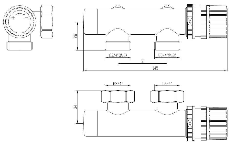 thermostatisch 3/4 onderblok haaks-rechts chroom