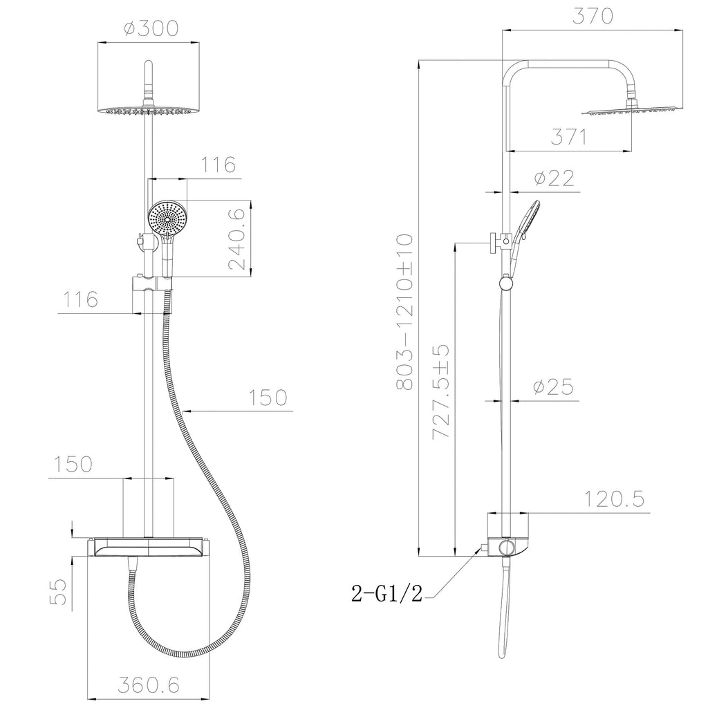 Tondell thermostatische regendoucheset opbouw met planchet mat zwart