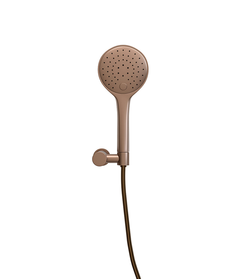 UniMatch handdoucheset met handdouche 3 standen Ø 12 cm, doucheslang en wandhouder kantelbaar geborsteld brons koper