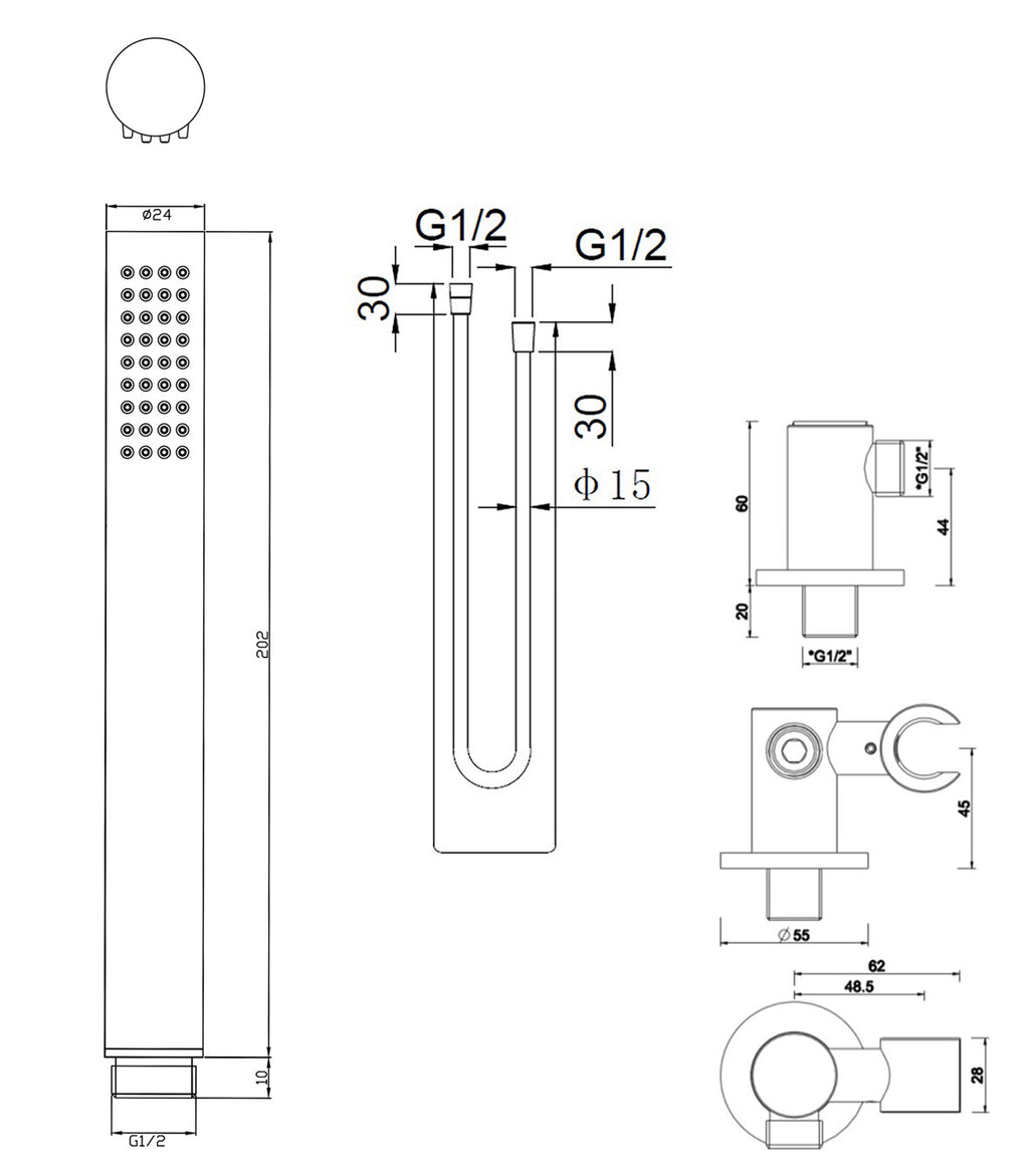 Kies voor de Unimatch staafhanddoucheset van Wiesbaden Sanitair, zodat je niet alle onderdelen los hoeft te bestellen. Deze set bestaat namelijk uit een mooie staafhanddouche, een handdouchehouder en een doucheslang van 150 cm lang.