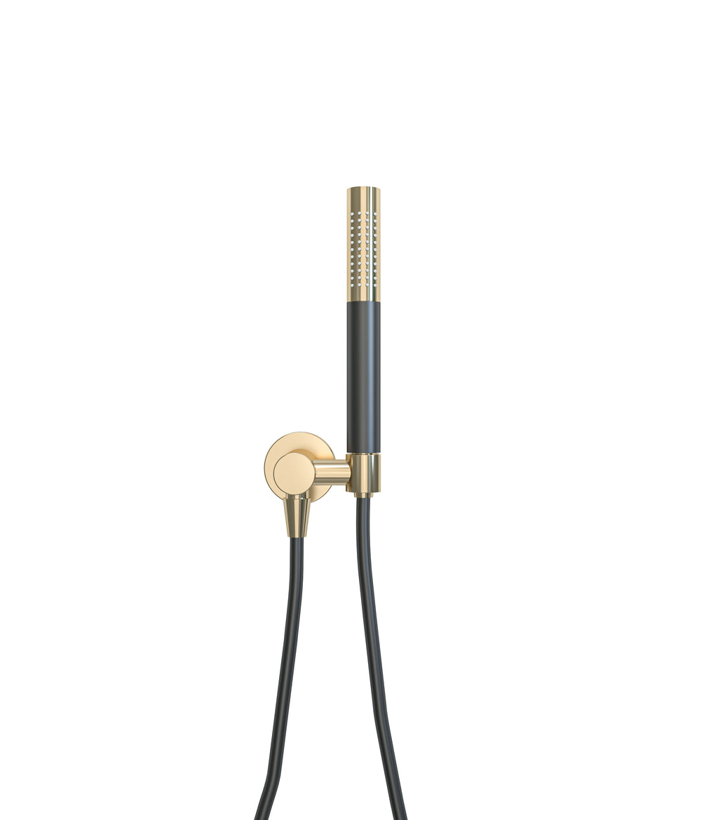 UniMatch handdoucheset met staafhanddouche 1 stand, doucheslang en wandaansluitbocht geborsteld messing/mat zwart
