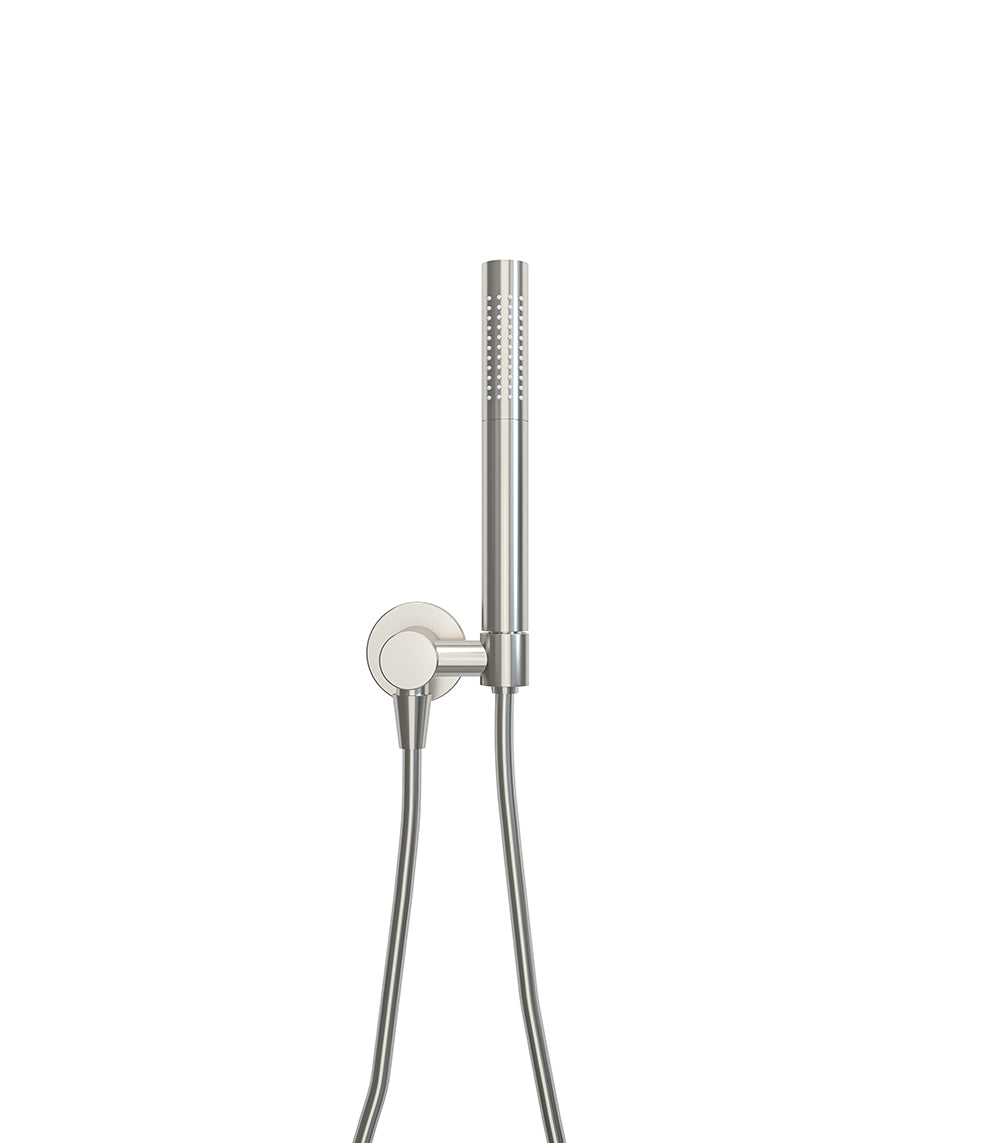 UniMatch handdoucheset met staafhanddouche 1 stand, doucheslang en wandaansluitbocht geborsteld staal