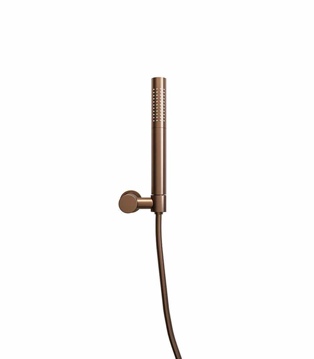 UniMatch handdoucheset met staafhanddouche 1 stand, doucheslang en wandhouder kantelbaar geborsteld brons koper