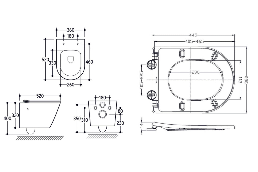 Vesta wandcloset rimless met bidetkraan koud water met Shade slim toiletzitting glans wit