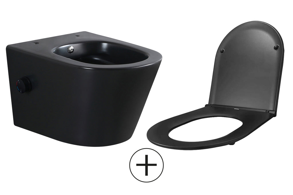 Het Vesta wandcloset rimless met bidetkraan en Flatline toiletzitting biedt de ultieme toiletervaring met een moderne uitstraling en innovatieve functionaliteit. Het rimless ontwerp zorgt voor een optimale hygiëne, omdat er geen verborgen rand is waar vuil en bacteriën zich kunnen ophopen. Hierdoor is het onderhoud eenvoudiger en blijft je toilet langer fris. De ingebouwde bidetfunctie voegt daar nog eens extra comfort aan toe. Geniet van een verfrissende en hygiënische ervaring, elke keer dat je het toilet gebruikt. Dit wandcloset is niet alleen functioneel, maar ook een stijlvolle toevoeging aan je badkamer. Verkrijgbaar in mat zwart, glanswit en mat wit.
