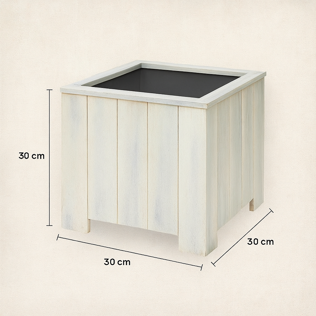 Deze plantenbak is een vierkante staande plantenbak van 30 x 30 cm gemaakt van duurzaam acacia FSC hout en is wit van kleur. De plantenbak is geschikt voor binnen en buiten en is ideaal voor op het balkon of terras. Met deze plantenbak kun je gemakkelijk je favoriete planten en bloemen in huis of buiten neerzetten en er een mooie eye-catcher van maken.