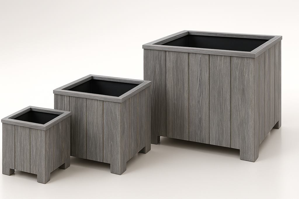Storm Vierkante Plantenbakken Set - FSC Acacia Geborsteld Grijs (3-delig)