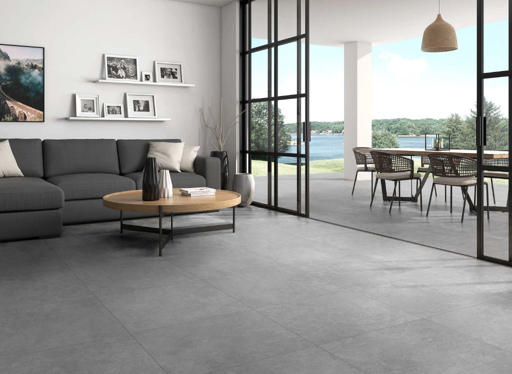Denk niet dat deze vloertegels alleen geschikt zijn voor de badkamer. De Breccia Grigio tegels transformeren werkelijk elke ruimte in je woning: