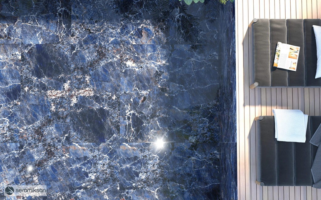 De Galaxy Blue vloertegels in 60x120 cm formaat brengen het mysterie en de diepte van een sterrennacht naar je vloer. Deze premium porcellanato tegels van SERAMIKSAN combineren een diepblauwe basis met marmerachtige aders die doen denken aan nevels in het heelal. De Full Lappato (hoogglans) afwerking vangt en weerkaatst het licht op een manier die elke ruimte meer diepte en dimensie geeft.