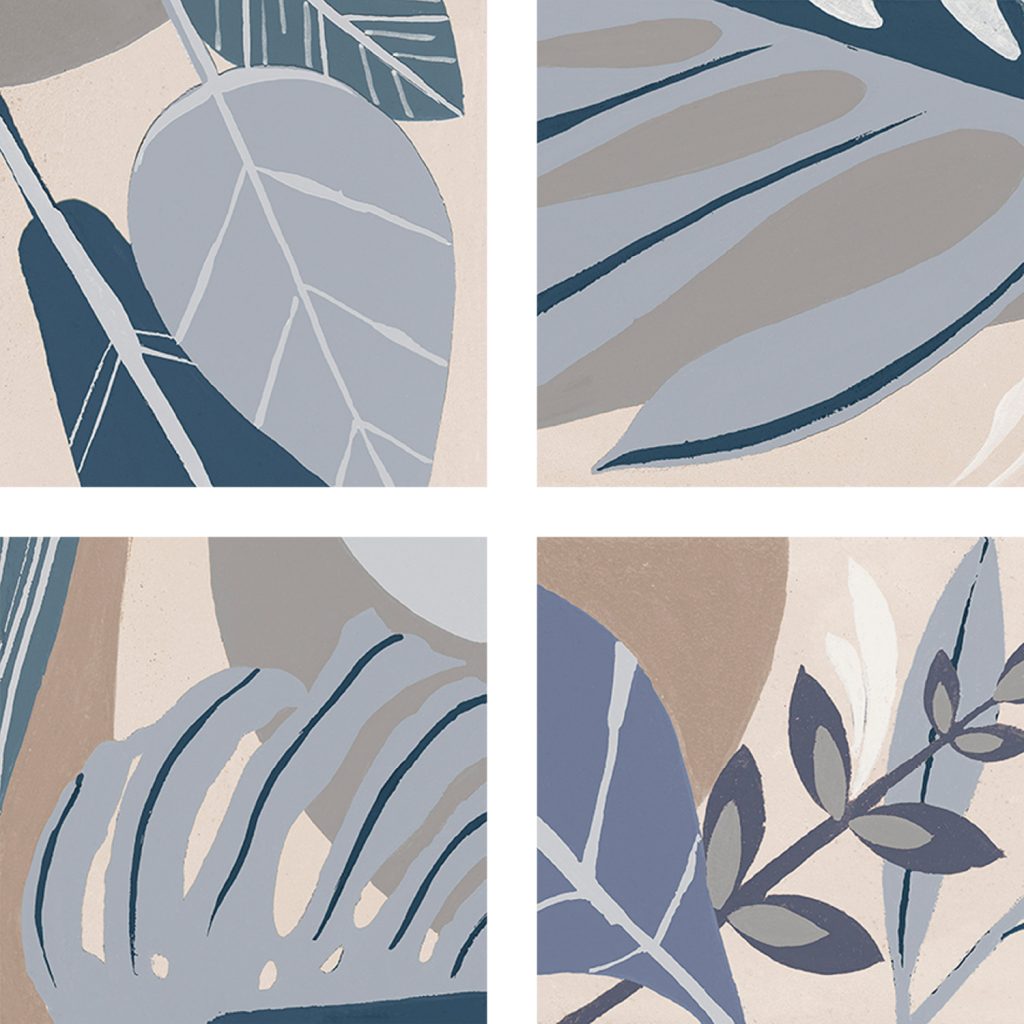 De Habana Blue collectie kenmerkt zich door een organisch bladpatroon in verschillende tinten blauw, aangevuld met neutrale accenten. Elke tegel heeft een uniek ontwerp, waardoor het geheel een natuurlijk en gevarieerd effect krijgt. Het matte oppervlak geeft de tegels een zachte, subtiele uitstraling.