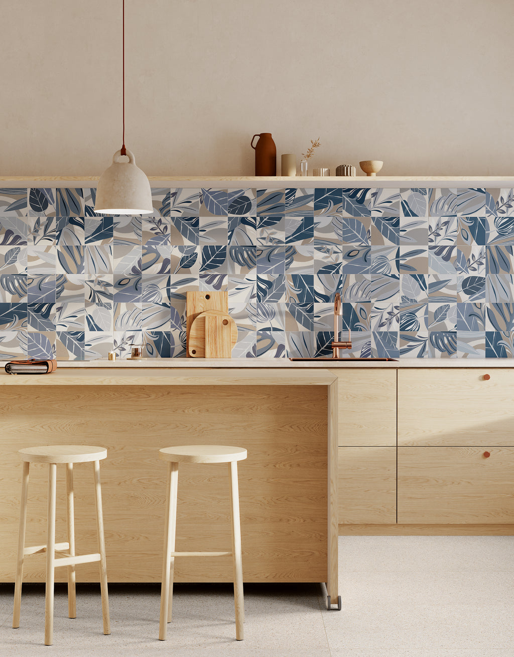Deze tegels vormen een prachtig uitgangspunt voor een fris, natuurlijk interieur. Ze passen uitstekend bij natuurlijke materialen zoals hout, rotan en linnen. De blauwtinten harmoniëren mooi met wittinten, zandkleuren, lichtgrijs en natuurlijke groentinten.
