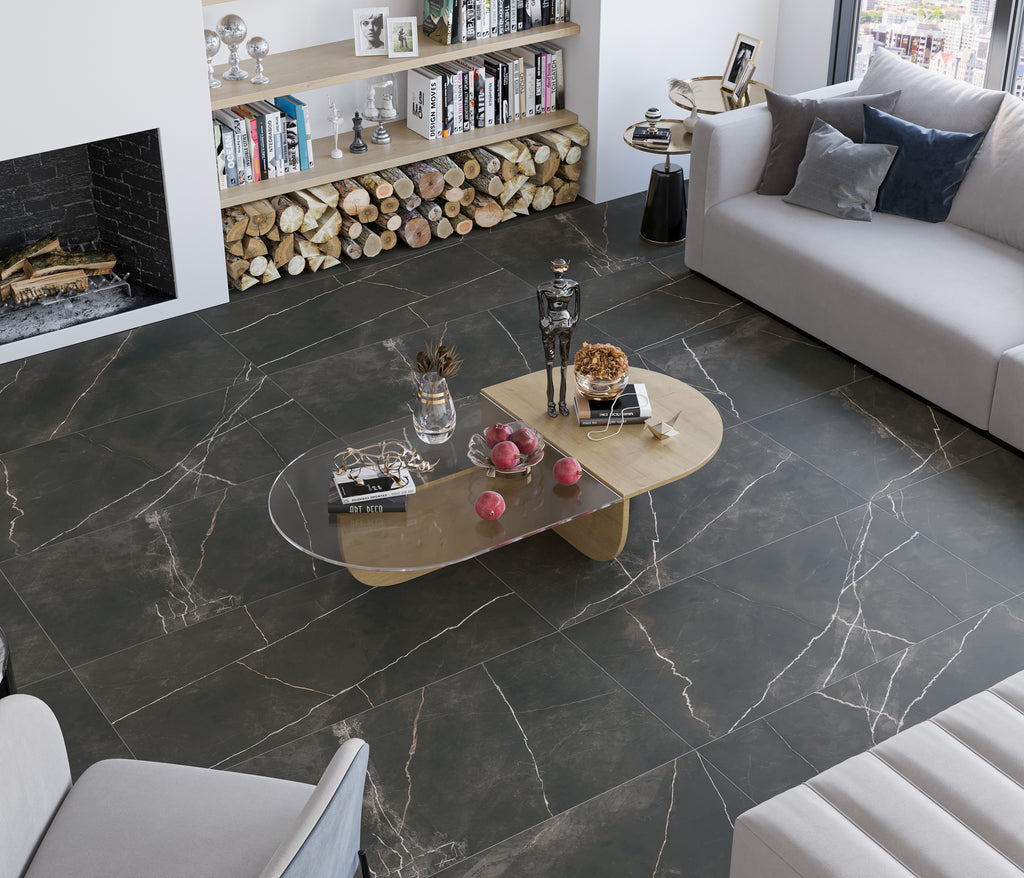 De Quasar Stone Black vloertegel biedt eindeloze creatieve mogelijkheden voor jouw interieur: