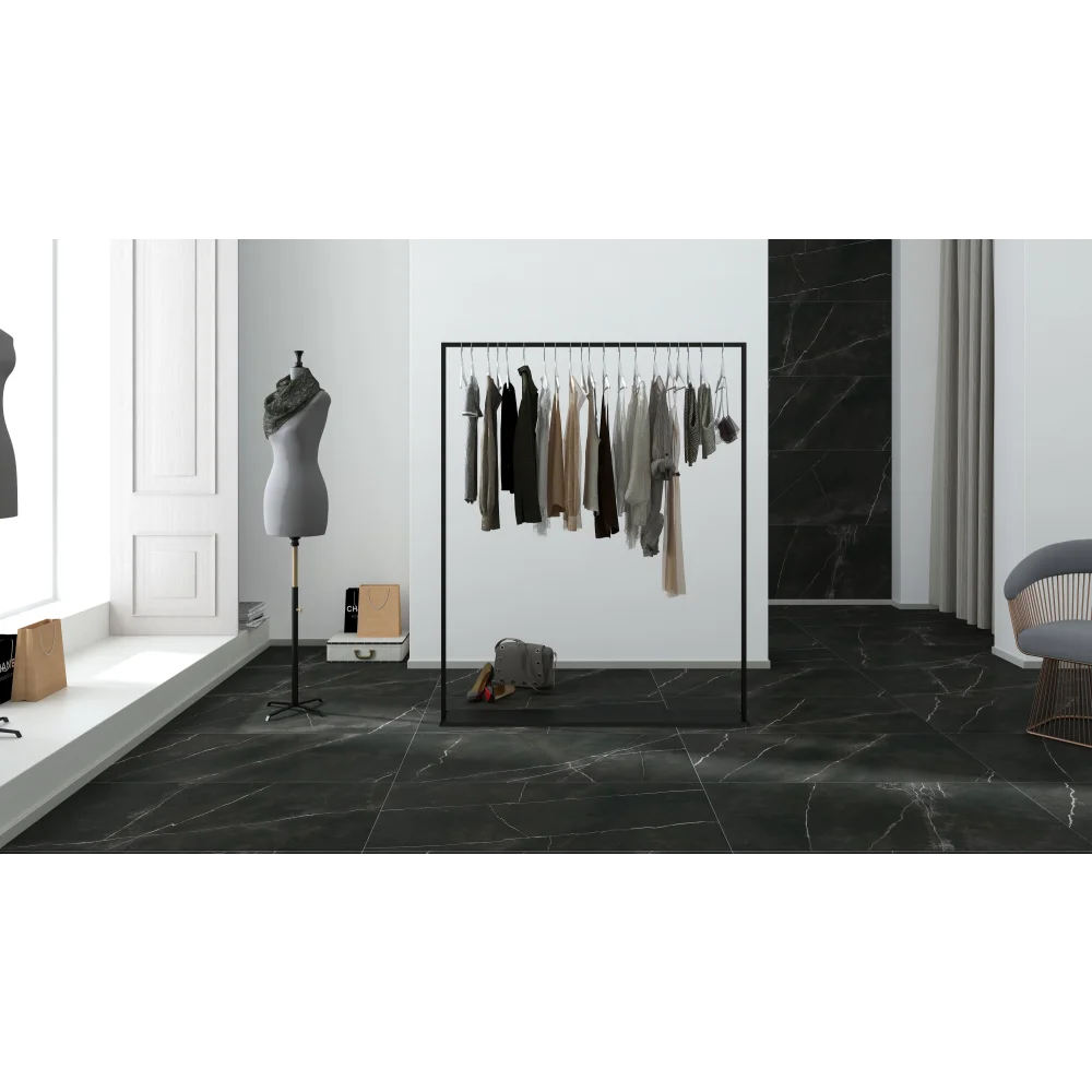 De Quasar Stone Black vloertegel brengt de klassieke schoonheid van zwart marmer naar je interieur, maar dan met alle voordelen van modern porselein. De fijne, witte aders tegen de diepzwarte ondergrond creëren direct een gevoel van luxe en verfijning in elke ruimte. Deze grootformaat tegel (60x120 cm) verandert je vloer in een statement dat zowel indrukwekkend als subtiel is - een perfecte basis voor zowel minimalistische als weelderige interieurs.