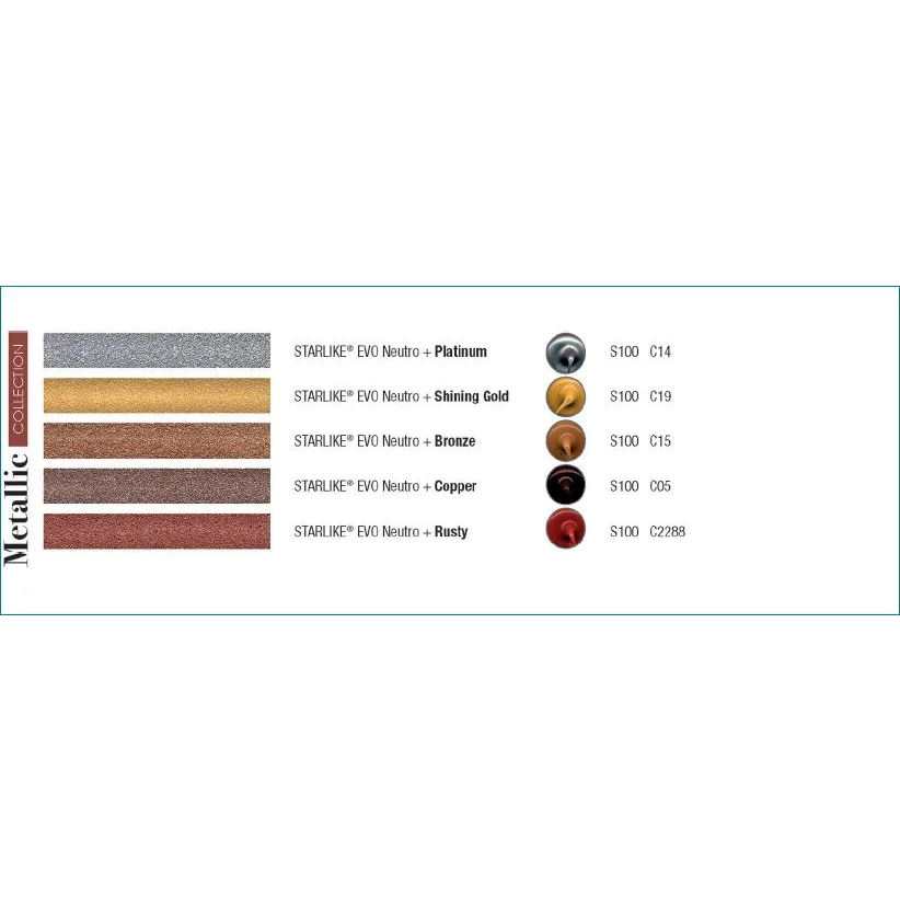 Additief STARLIKE FINISHES COPPER is bedoeld om alleen te worden gemengd met Litokol Starlike EVO 113 (neutraal) om een koperkleurig naadoppervlak met een metallic effect te verkrijgen.
