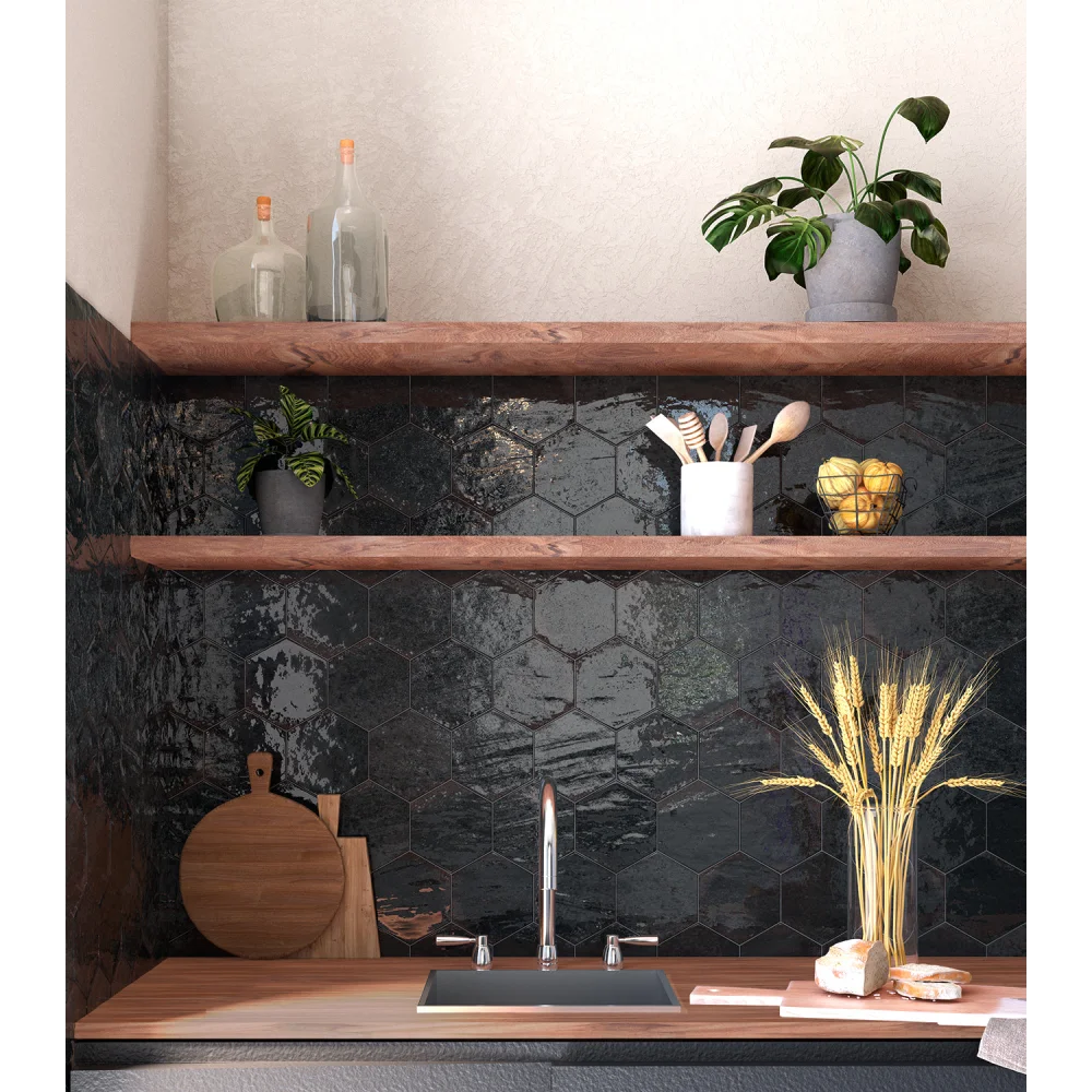 Wandtegel Carmen Hexagon Black 13x15 cm glans