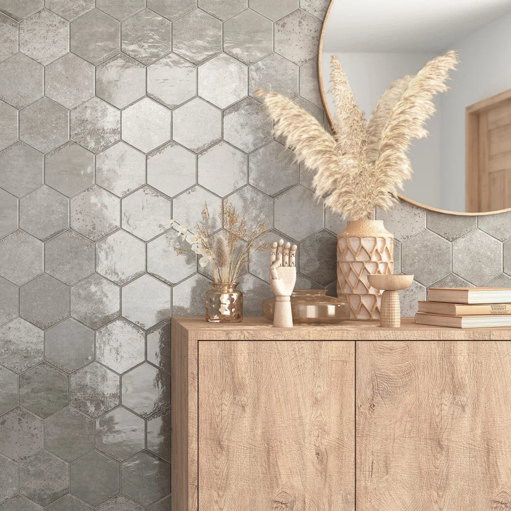 Wandtegel Carmen Hexagon Grey 13x15 cm glans