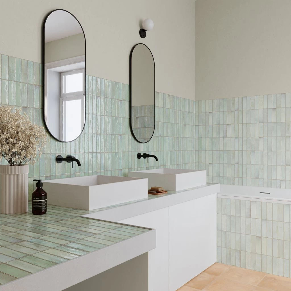 Badkamer: Creëer een spa-achtige oase waar de salie-groene tint ontspanning stimuleert en de glanzende afwerking het licht optimaal weerkaatst
