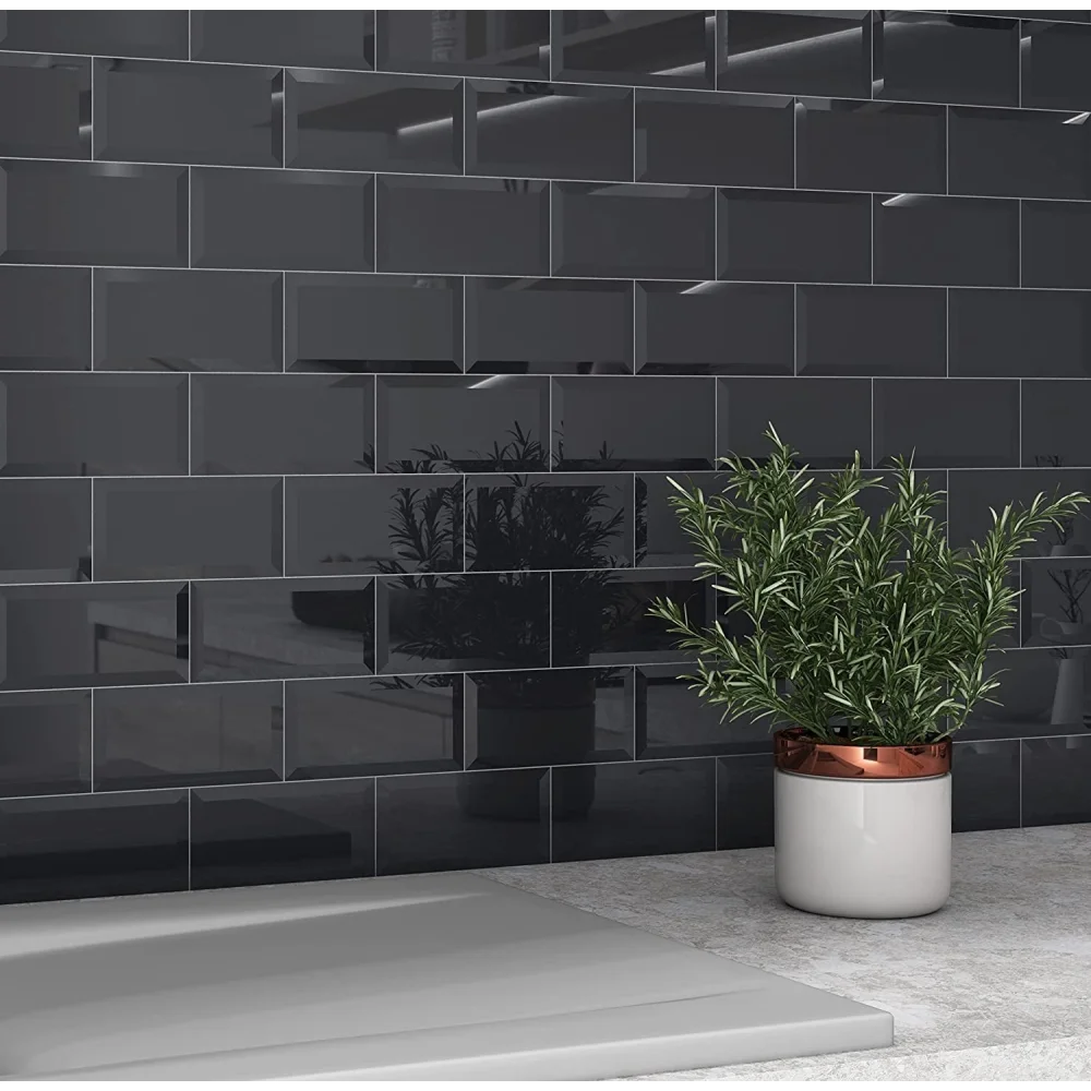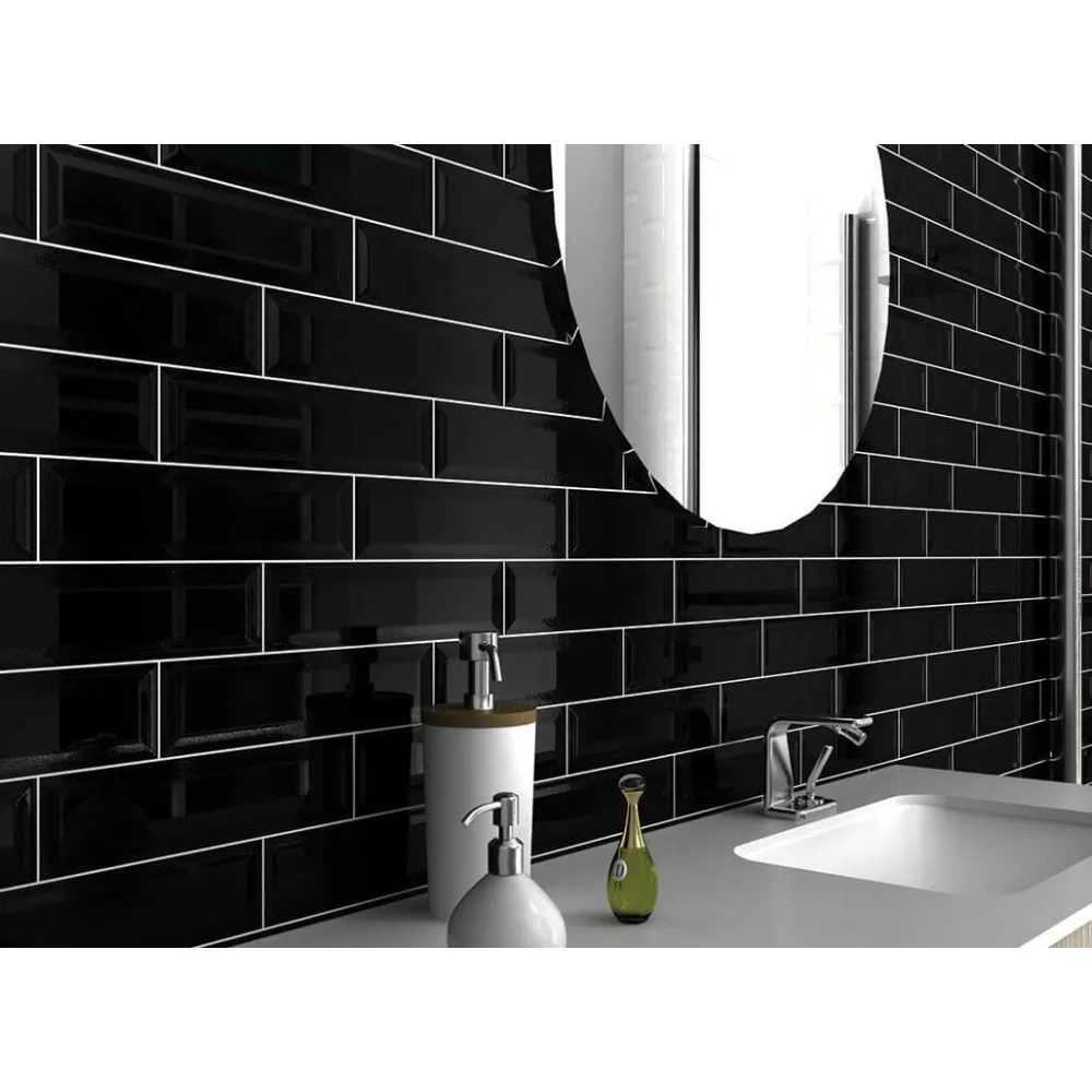 Wandtegel Metro Zwart 10x20 cm brillo glans