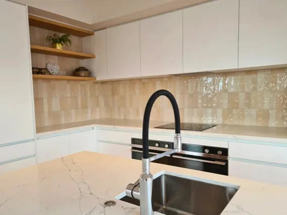 Keuken: Voeg warmte toe aan je backsplash die prachtig combineert met zowel lichte als donkere keukenfronten