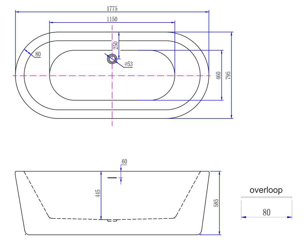 Bianco vrijstaand ligbad 178 x 80 cm acryl glans wit met waste glans wit