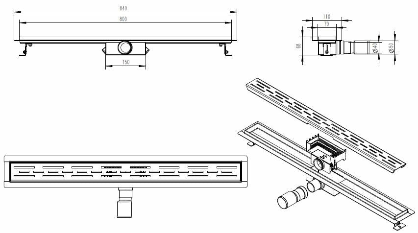 Deze set bevat alles wat je nodig hebt voor een probleemloze installatie, inclusief een waterdicht membraan en verstelbare poten voor een perfecte pasvorm. Het rooster zit inbegrepen voor een strakke, uniforme look.
