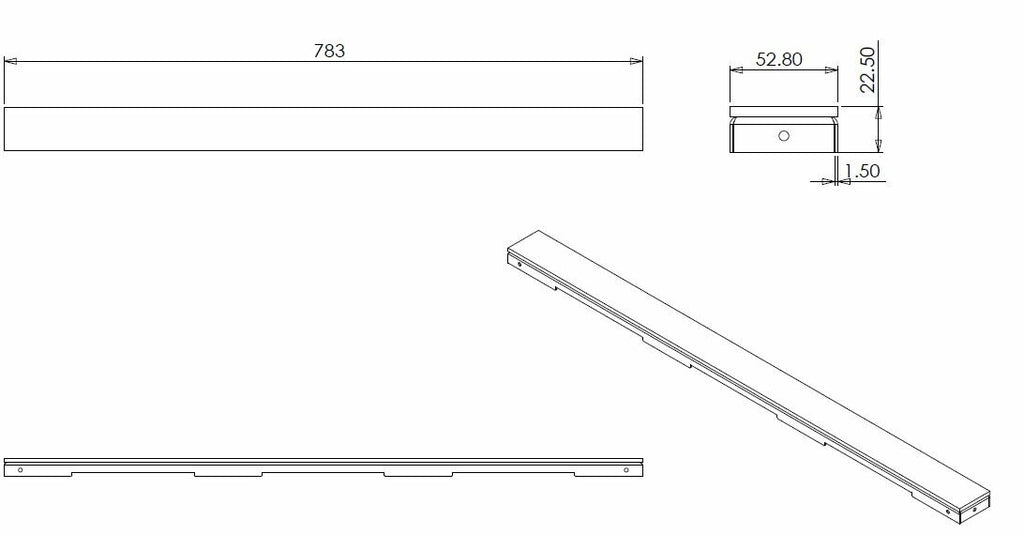 Glasrooster voor douchegoot 80 x 7 cm glanzend zwart
