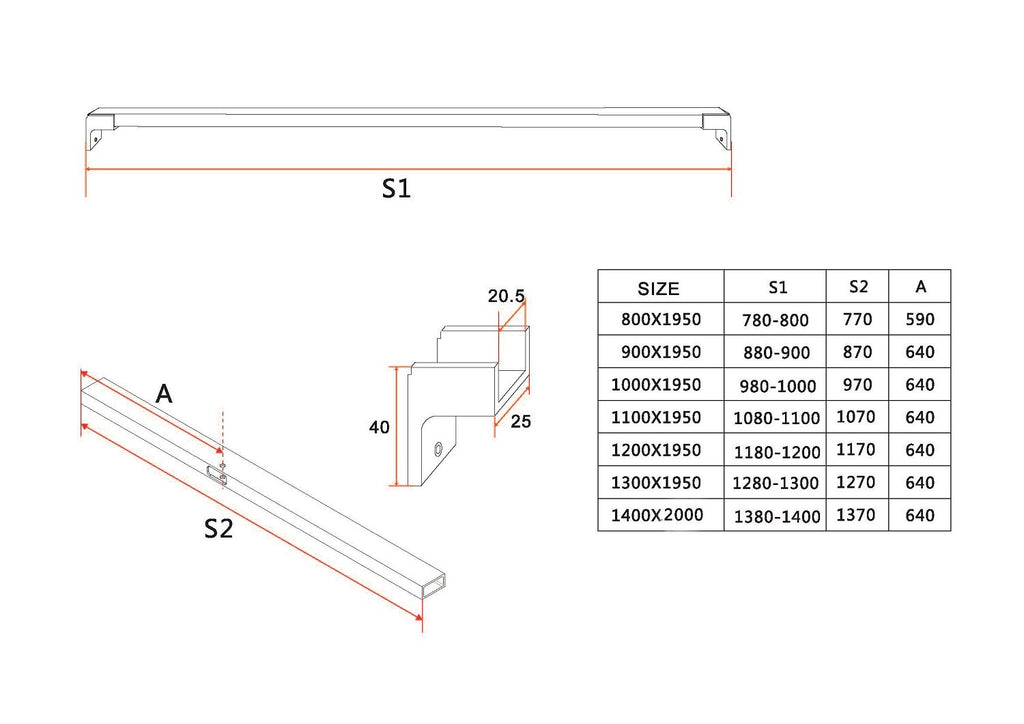 Horizon stabilisatiestang voor nisdeur mat zwart