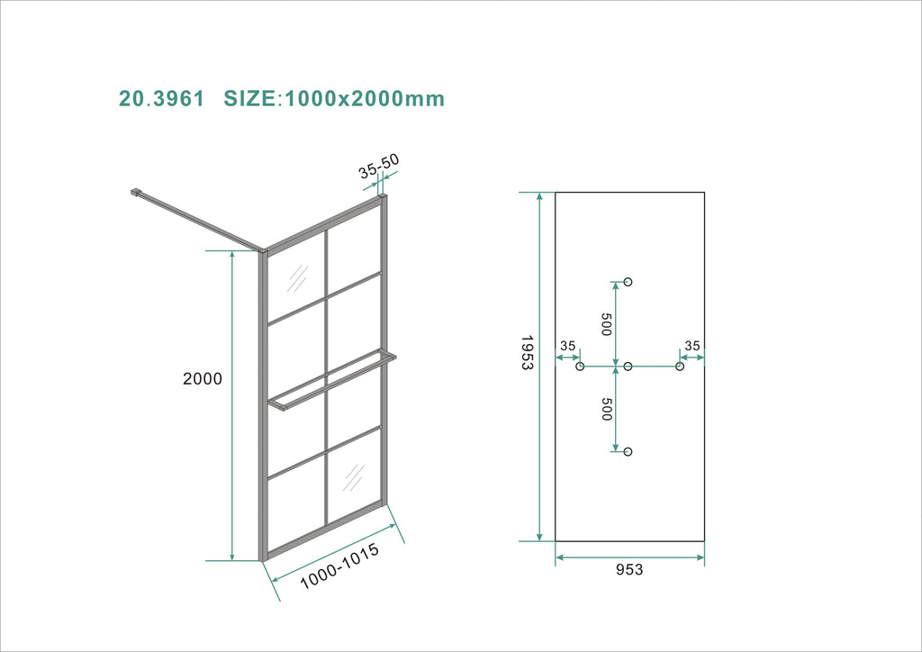 Maaz inloopdouche met raster en handdoekhouder 1000 x 2000 x 10 mm helder glas/mat zwart