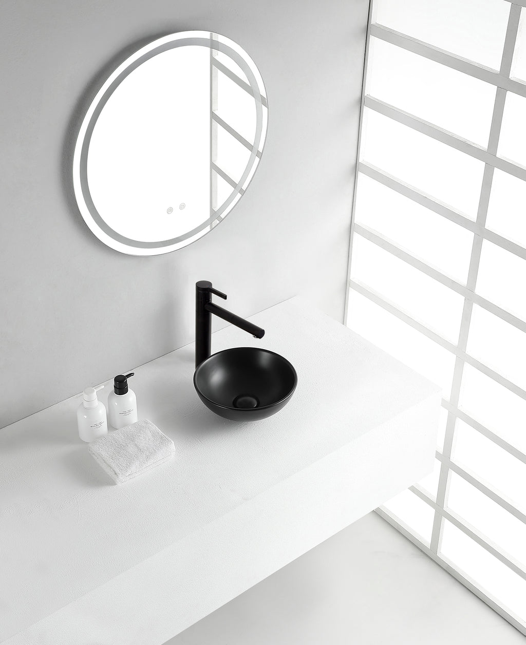 De matte, zwarte afwerking geeft de Kimo waskom een subtiele, sophisticated look. Het matte oppervlak is niet alleen een lust voor het oog, maar ook praktisch en eenvoudig schoon te houden. Vuil en waterdruppels vallen minder op, waardoor jouw waskom langer een strakke indruk maakt.