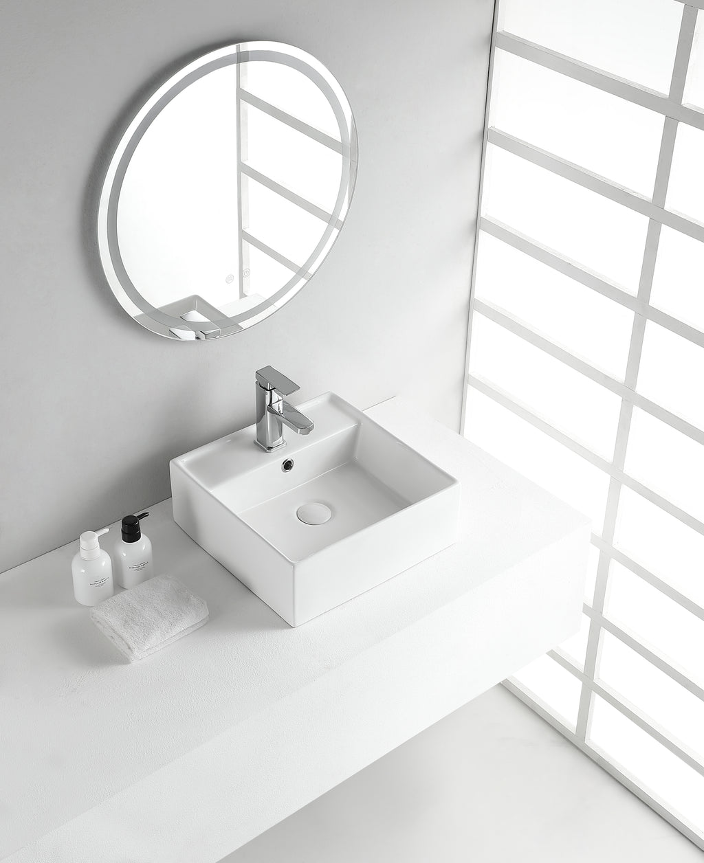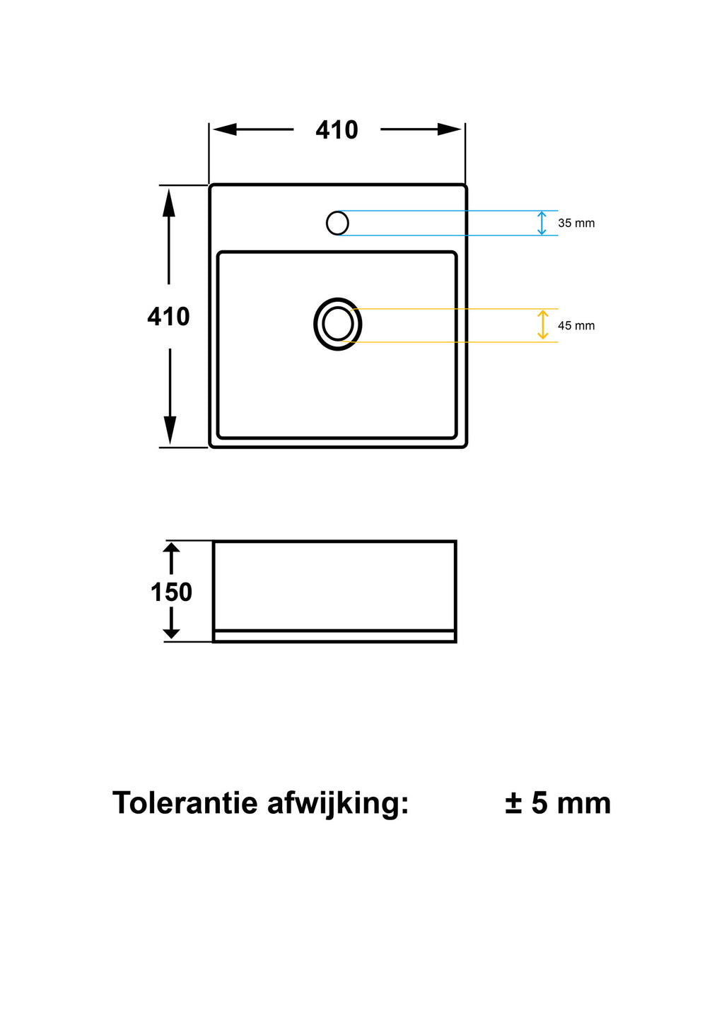 De Wiesbaden Larx vierkante waskom brengt een strakke, minimalistische uitstraling naar je badkamer. Met zijn afmetingen van 41x41x15 cm past deze waskom perfect op een badkamermeubel of wastafelblad. Het glanzende witte keramiek zorgt voor een frisse en schone look die tijdloos blijft.