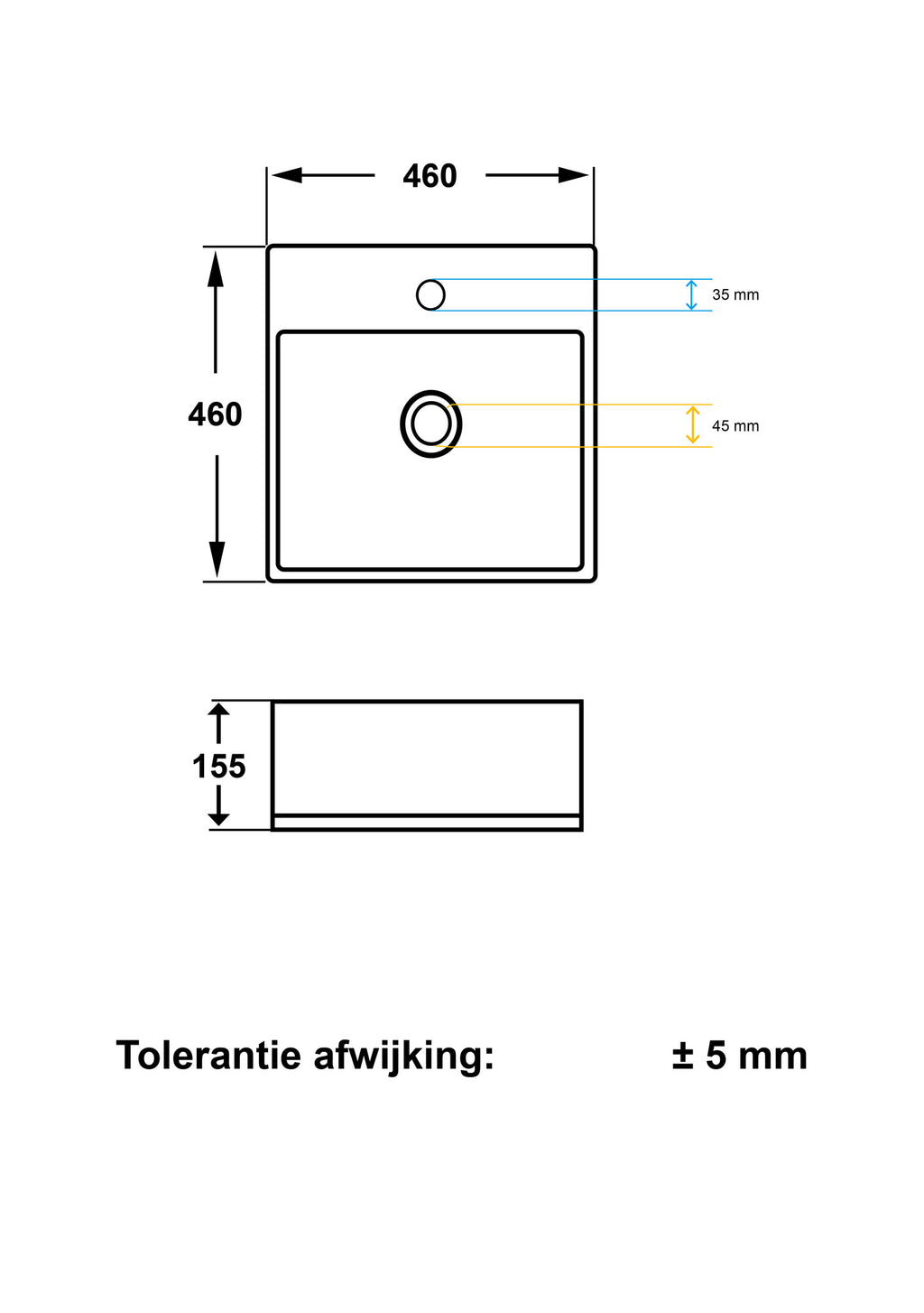 Met een royale breedte en lengte van 46 cm biedt de Larx waskom volop ruimte voor al je dagelijkse rituelen. De diepte van 16,5 cm zorgt voor een comfortabele gebruikservaring zonder te veel spatwater. Deze waskom is een praktische en esthetische keuze voor elke moderne badkamer.