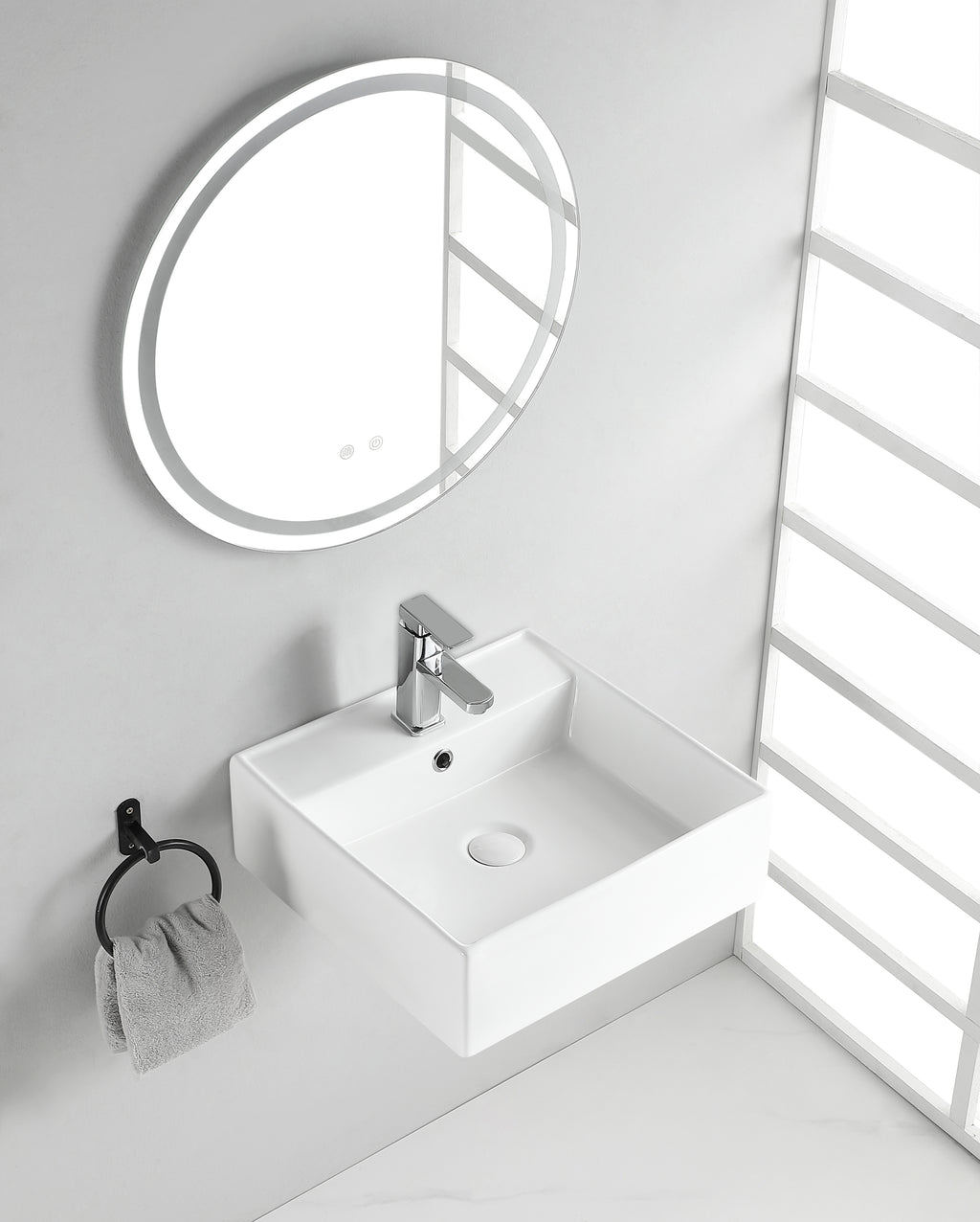 Dankzij het neutrale ontwerp en de compacte afmetingen kun je de Larx waskom op diverse manieren integreren in jouw badkamer. Plaats hem op een wastafelmeubel, een losstaande zuil of monteer hem aan de wand voor een zwevend effect. De keuze is aan jou!