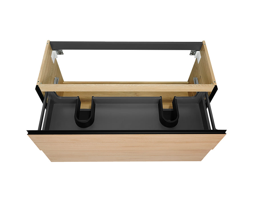 - 2 sifonuitsparingen in de lade waardoor het meubel geschikt is voor combinatie met een dubbele wastafel