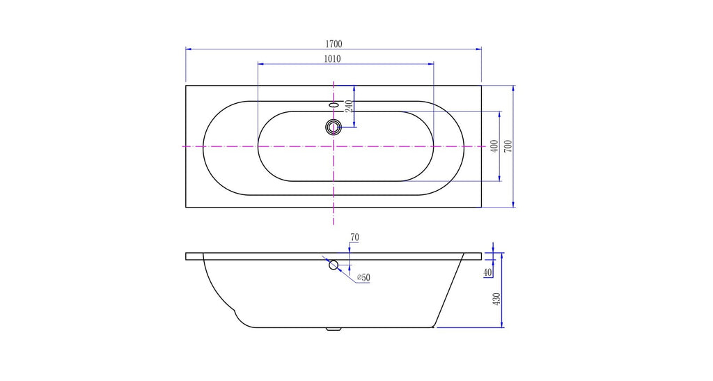 Portus RD inbouw duo ligbad 170x70x43 cm glans wit
