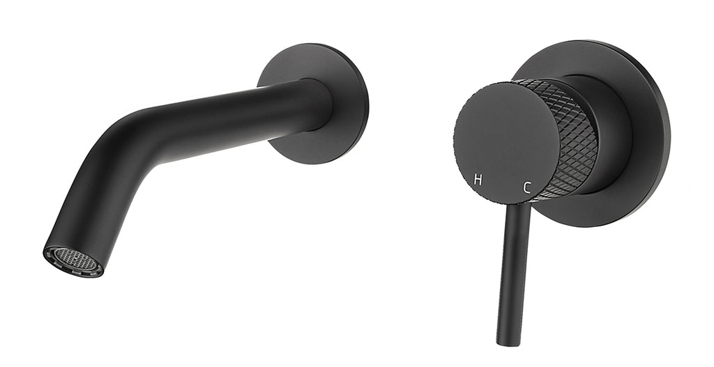 Wiesbaden Ribbd Inbouw-Wastafelmengkraan Eenhendel Mat Zwart