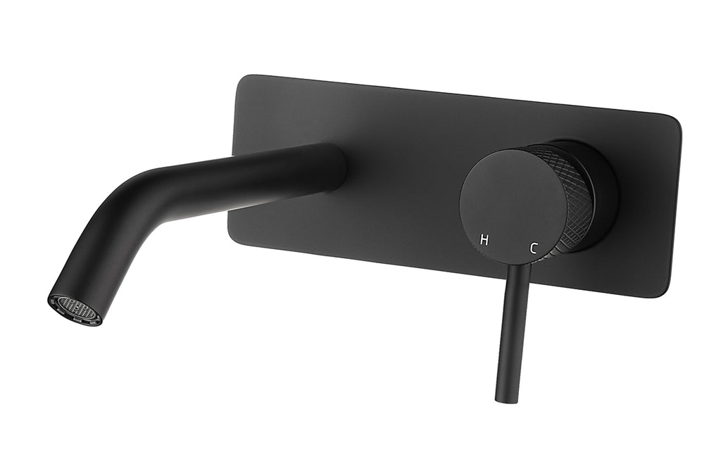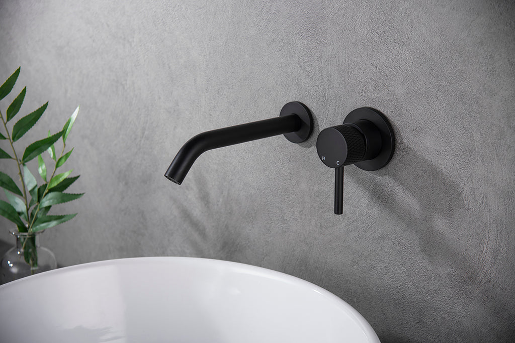 De Wiesbaden Ribbd inbouw-wastafelmengkraan wordt geleverd inclusief muurplaat en rozetten, waardoor installatie eenvoudig en veelzijdig is.