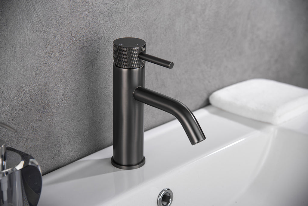 De gunmetal afwerking geeft deze wastafelmengkraan een unieke uitstraling die perfect past bij eigentijdse badkamerstijlen. Het geborstelde materiaal zorgt voor een luxe uitstraling en voelt tegelijkertijd stevig aan.