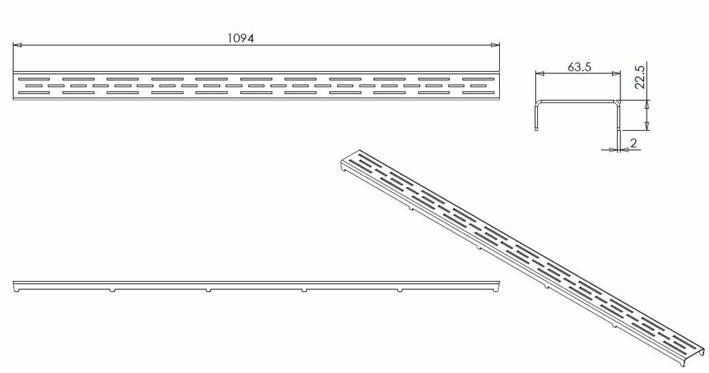 rooster standaard voor 3e generatie douchegoot 110 x 7 cm RVS