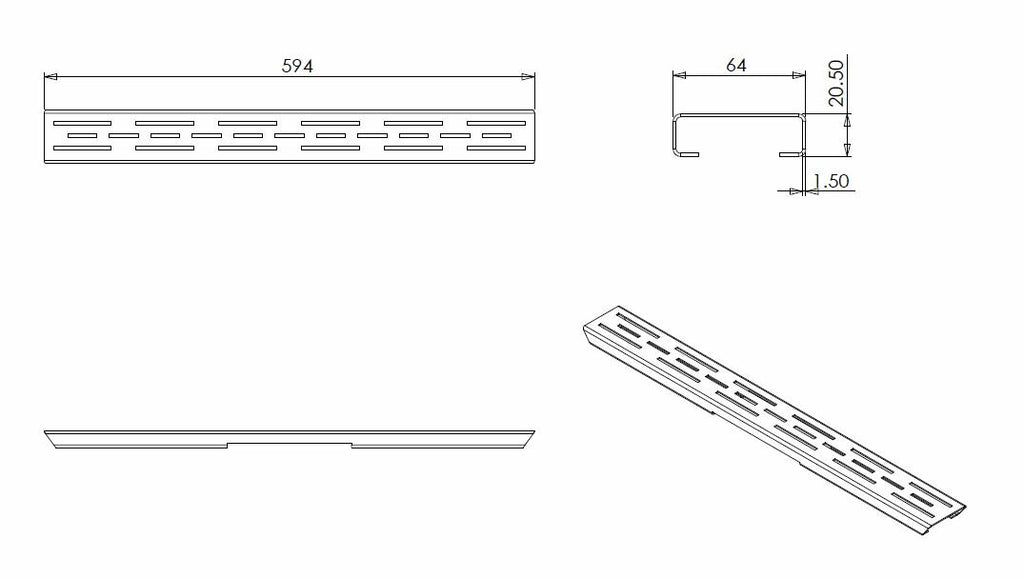 Los standaard rooster tbv 3e gen douchegoot 60cm matzwart