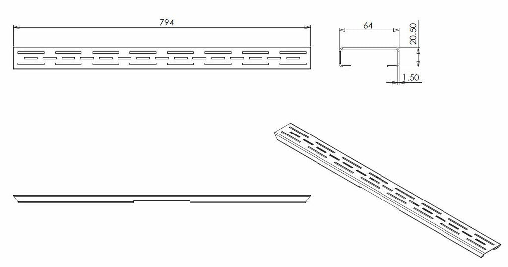 Los standaard rooster tbv 3e gen douchegoot 80cm matzwart