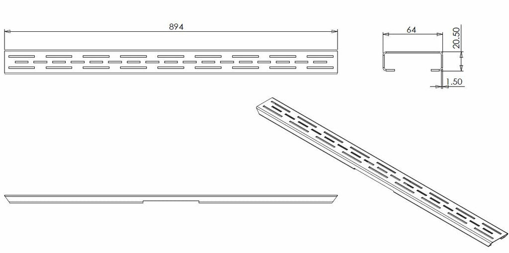 Rooster voor douchegoot met flens 90 x 7 cm mat zwart
