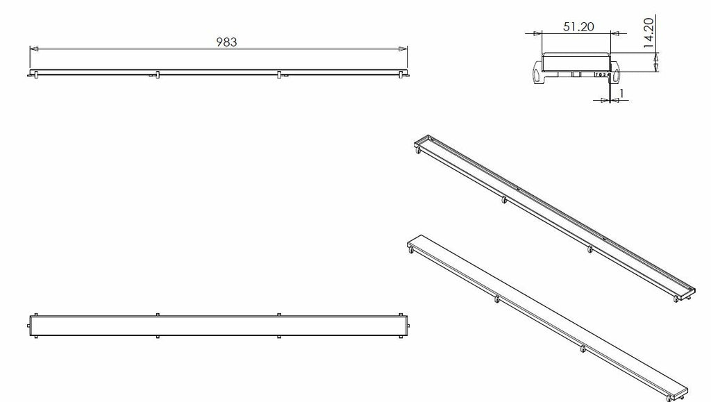 Tegelrooster voor douchegoot 100 x 7 cm RVS