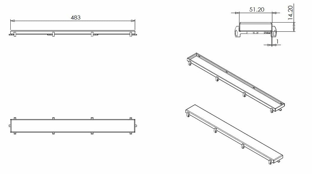 Tegelrooster voor douchegoot 50 x 7 cm RVS