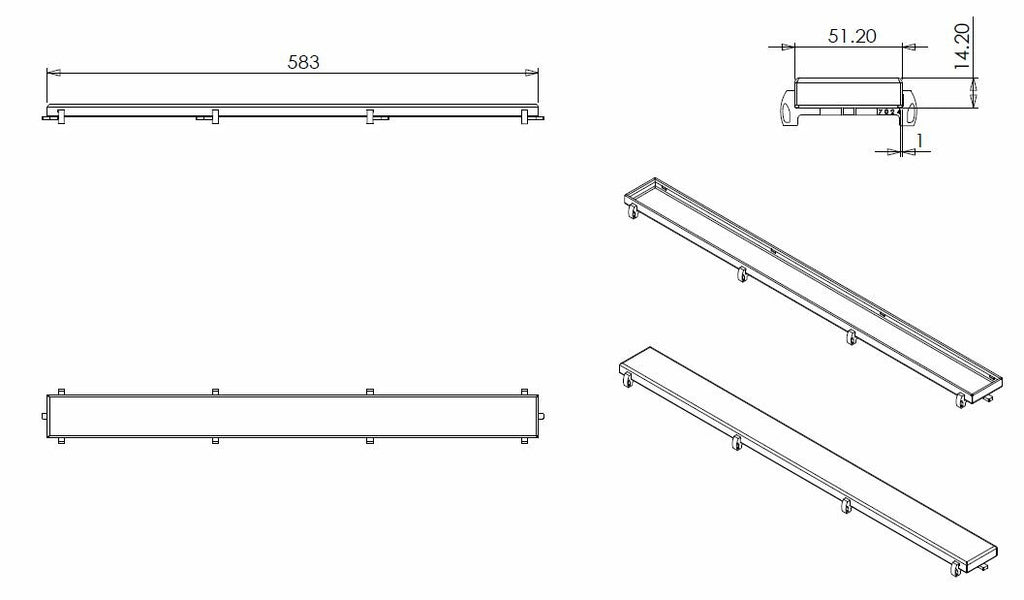 Tegelrooster voor douchegoot 60 x 7 cm RVS