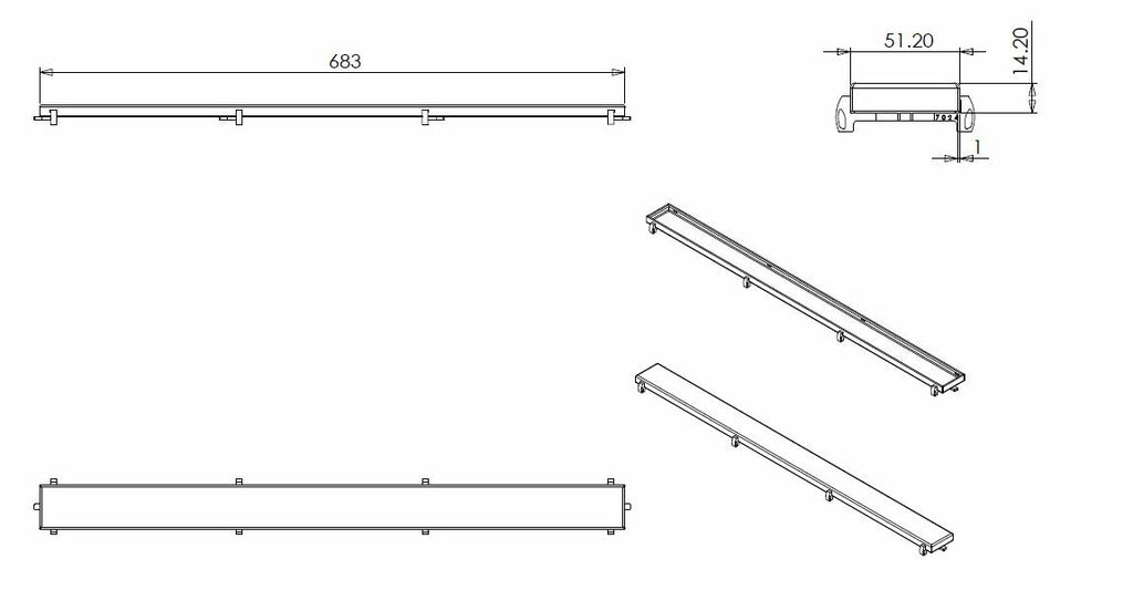 Tegelrooster voor douchegoot 70 x 7 cm RVS